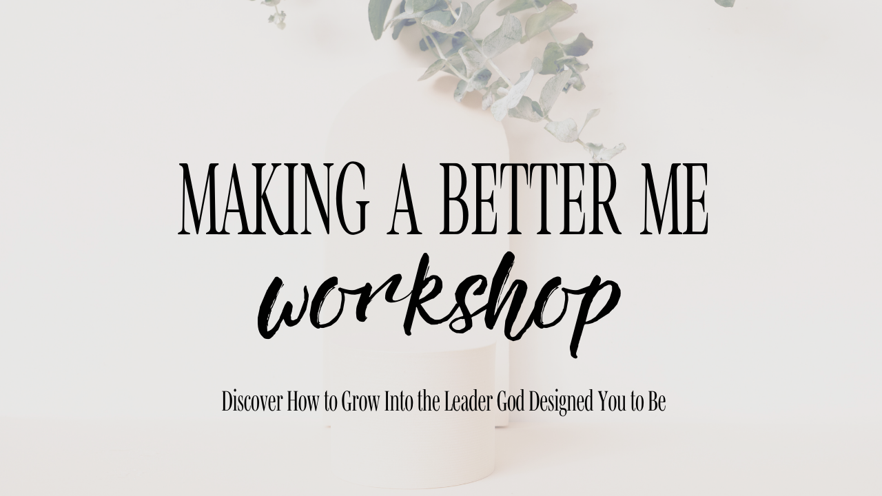 Making a Better Me Workshop is a FREE five-session workshop where you will discover how to grow into the leader God designed you to be. You’ll be digging into topics like growing in your confidence, getting a handle on your hurt, and learning how to lead through your pain.